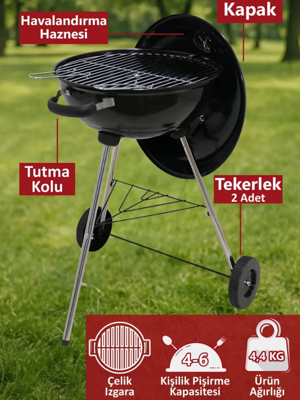 Küçük verandalar veya bahçeler için ideal olan bu su ısıtıcısı barbekü, arkadaşlarınızla rahat bir buluşma veya aile yemeği için yeterince büyük bir ızgaraya sahiptir! Bu yaz sezonunda sizi hayal kırıklığına uğratmayacak basit, zahmetsiz bir seçim. Bu barbekü, tekerlekleri ve kompakt yapısı sayesinde taşınabilirdir ve daha soğuk aylarda saklamak için harikadır.